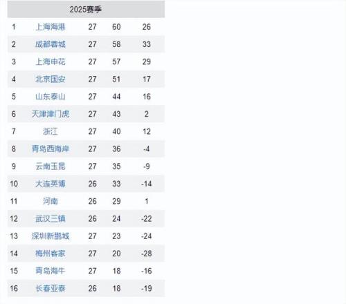 随着玉昆20,泰山22,国安爆冷,中超最新积分榜出炉:降级3选2