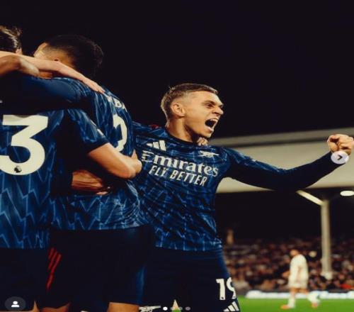 比赛第59分钟,萨卡开出角球,加布里埃尔前点一蹭,特罗萨德右脚打进。赛后,特罗萨德在社媒晒进球庆祝照片并配文:人人都爱漂亮的定位球,是吧?