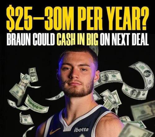 布劳恩被曝出,有望和掘金签下一份5年1.2亿美元,并且上下浮动500万的新合同,也就是说最少是5年1.15亿,最多是5年1.25亿。这份合同一签,布劳恩也将成为一个励志典范。还记得当初布劳恩刚进联盟是2022~23赛季,他在掘金队只打了6场首发70场替补,场均只有4.7分,这个数据让人想象不到,未来他会是一位年薪2500万以上的球星。