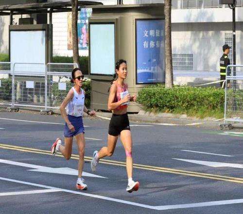 早晨7点的杭州,气温15度,相较更寒冷的西安,朱卿明显感觉到今天的肌肉跑起来完全不一样——有知觉,腿也没有打飘。前5公里,朱卿习惯先看看感觉,也按照自己计划中前半程76分到77分中的目标去跑。因为知道后半程有爬升不好跑,所以她想着那就争取跑个235左右。但是没想到跑了大概3-4公里时,一位澳大利亚的跑者上来了,一直位于朱卿之前4-500米,而这也反而给朱卿带来了动力,“按照她PB成绩来的话,她的成绩比我好太多了。”在此前,还有三位水平更高的外籍黑人选手,从出发前就已经没了身影。朱卿想着那就跟着这位白人选手,争取别被甩太远,可能后面还有点机会。就在这样“一直往前看”的念头中,朱卿跑完前半程用了差不多75分钟。