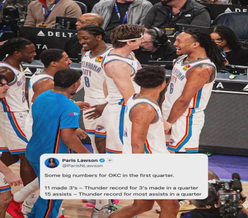 NBA名记Marc Stein写道:“这支雷霆朝着79胜3负去了!”杰伦-威廉姆斯出战25分钟,19投11中得到25分3板8助2断。在亚历山大缺阵的情况下,他跟霍姆格伦率队连胜。按照快船现在的排名,雷霆有12.5%的概率抽中明年状元签!