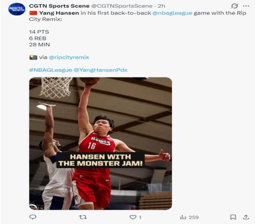 杨瀚森完成了个人G联赛的背靠背,一场32分钟,一场28分钟,G联赛的节奏比NBA还快,杨瀚森也没有出现体能跟不上的情况下,这背靠背的G2杨瀚森更是撕裂之城混音发挥最出色的那个,他10中5拿到14分6篮板1助攻?盖帽(其实比赛至少2-3次盖帽但赛后0个)。