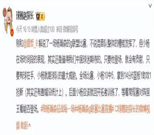 杨瀚森虽然在NBA还是一个饮水机,但他在G联赛已经绝对的核心,周琦在G联赛甚至都还打过替补,战术地位都不同,杨瀚森得到的锻炼肯定超过周琦,如果杨瀚森明年回国打世预赛,那还不乱杀吗?考虑到八村垒、河村勇辉可能回归日本男篮,杨瀚森说不定真的要回来打世预赛。