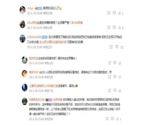 不仅是北京体育记者勇方方发文表示不满,更多的球迷也留言表达了自己的愤慨之情。有网友表示“荒谬的没边儿了”,也有网友说“这是在传播疾病吧?必须要严查!”还有球迷说“应该投诉到篮协吧!最好向全世界曝光!”球迷对此确实很激动,也很愤慨,接下来看篮协和CBA会有什么样的举动,会不会对山西队主场(太原赛区)进行处罚。篮协最严重的处罚应该是取消本赛季部分或者全部主场,不过球迷这次的行为应该还达不到相应的标准。