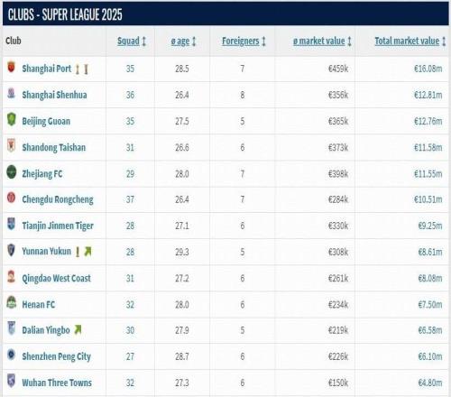 北京时间12月17日,转会市场网更新了中超球员身价,中超球队的身价更新也随之出炉。德转中超球队身价(2025赛季参赛球队)1.上海海港 1608万欧2.上海申花 1281万欧3.北京国安 1276