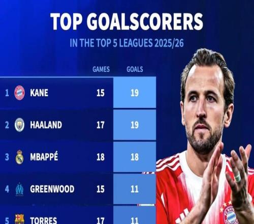 北京时间12月27日,德转统计出了本赛季至今欧洲五大联赛进球最多的10名球员,哈里-凯恩和哈兰德同以19球排名第一,姆巴佩18球位列第三,此外格林伍德和费兰-托雷斯也都榜上有名。德