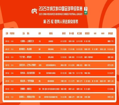 北京时间10月11日,中甲联赛第26轮将于今晚打响。刚刚,本轮裁判选派安排表出炉,2场事关冲超和保级的关键战启用VAR,有多名中超裁判执哨。刚刚,中足联官网公布了中甲联赛第26轮裁判