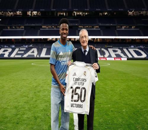 在皇家马德里5-1大胜皇家贝蒂斯的比赛中,维尼修斯收获皇马生涯西甲第150场胜利,赛后获赠纪念球衣。