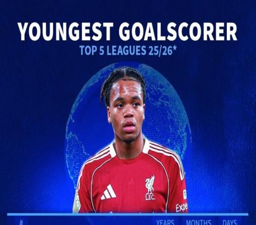 北京时间1月28日,德转统计出了本赛季至今欧洲五大联赛俱乐部最年轻的10位进球球员,利物浦的新星恩古莫哈以17岁4个月28天排名第一,伦纳特-卡尔、卡马尔达、易卜拉欣-姆巴耶以及